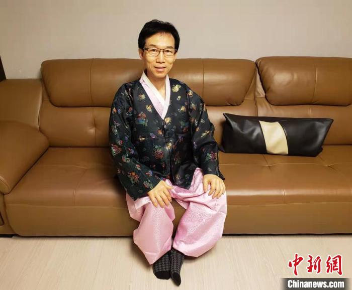 1月31日除夕夜,禹庆济身穿韩服,与几位同在长春生活的韩国朋友一起喝米酒、吃年糕,通过视频向亲人们拜年,欢快迎接新春的到来。