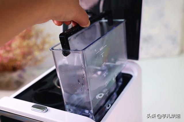 1.将纯净水放入咖啡机水箱,再将水箱安装到咖啡机里。