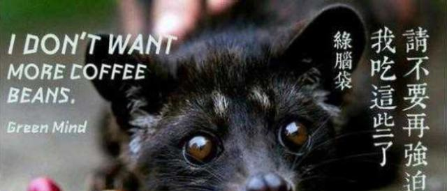 尽管有很多喝过猫屎咖啡的人,他们也说猫屎咖啡的口感味道确实很独特,但也不是觉得这种咖啡就变得那样的高级,尤其大家了解到猫屎咖啡的制作过程之后,我们才明白,这昂贵的猫屎咖啡越是被人们推崇,那么对待小猫就越残忍……因为没有买卖,就没有伤害,现在用在猫屎咖啡上,再合适不过了!猫屎咖啡叫做麝香咖啡,大家第一次听到猫屎咖啡,一定会以为是咖啡豆像猫屎,或者是这种咖啡取了一个独特的名字,但事实上是---猫屎咖啡就来自于麝香猫的猫屎。