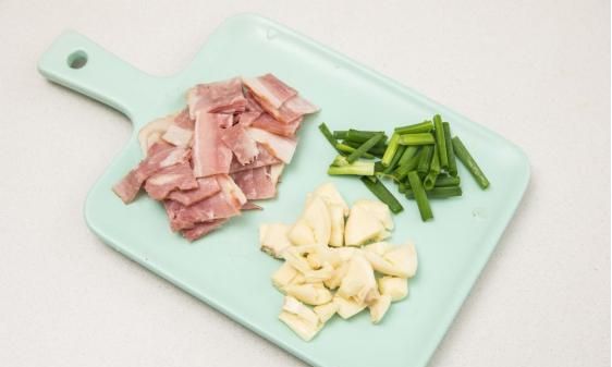3、因为培根本身就是腌制食品,带有一定的咸香味,所以在之后的调味过程中就只加了两克食盐,加太多就会影响口味和身体健康的。