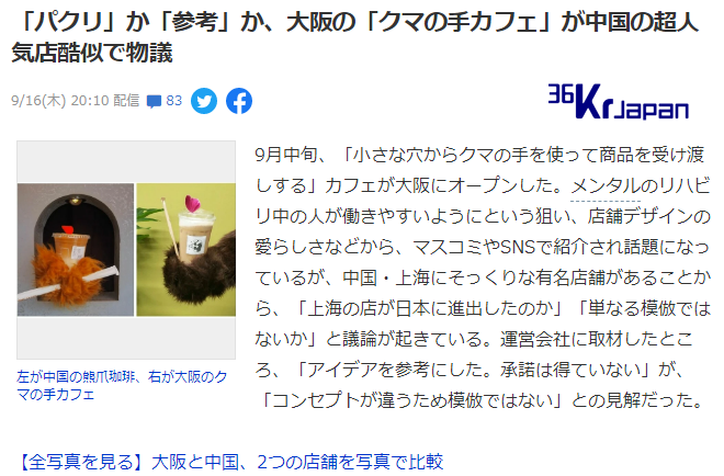 这家店负责宣发的工作人员最开始接受日本媒体采访时表示:“店的形状和风格相像这种事,主要是为了表达对非日常’(上海熊爪咖啡公司名)的敬意,稍微有点做得过头了,这一点我们多少反省了自己”。