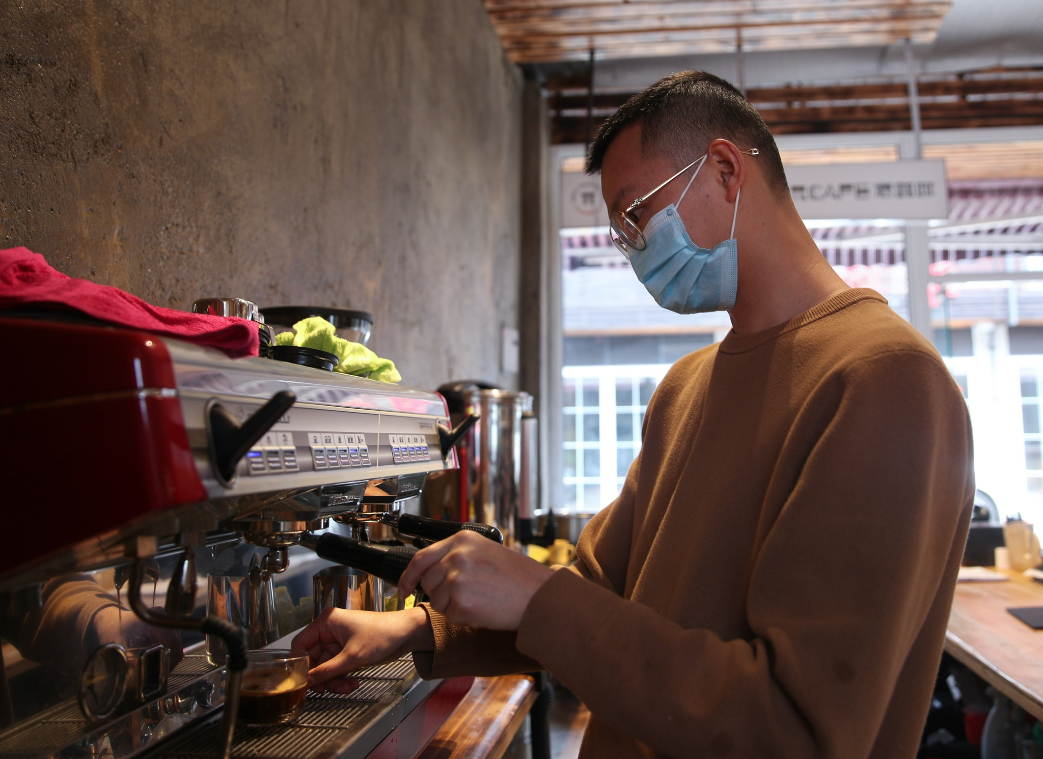 7月10日,张仁全在肯尼亚内罗毕的餐厅内为顾客制作咖啡。新华社记者 龙雷 摄
