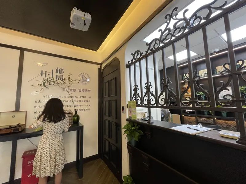 邮政所内部更是别有洞天。原先普通的玻璃窗服务台被铁艺围栏取代,邮政业务办理照常,但又让人恍若身处老上海的氛围中,寄信、寄件也具有了别样的体验感。