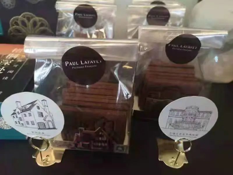 柜台对面的一排复古矮柜上,则摆放了包括《遇见武康大楼》口袋书、徐汇公共旅游地图、武康大楼明信片、徽章以及特制的武康大楼曲奇、冰激凌等图书和文创,一台“声音明信片”制作机还能让市民游客录下自己的心里话寄送给家人朋友。