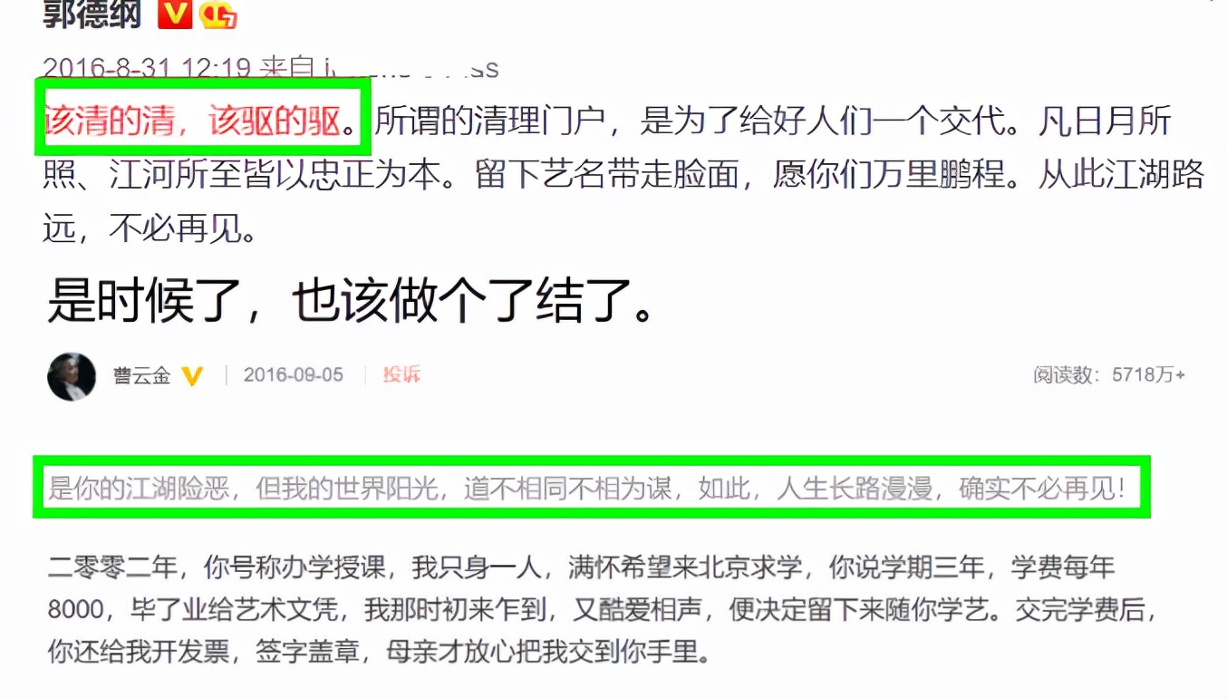 而北郭在带动德云社后也迎来了一系列争议,其中,当属他与爱徒曹云金的对峙看点最多。