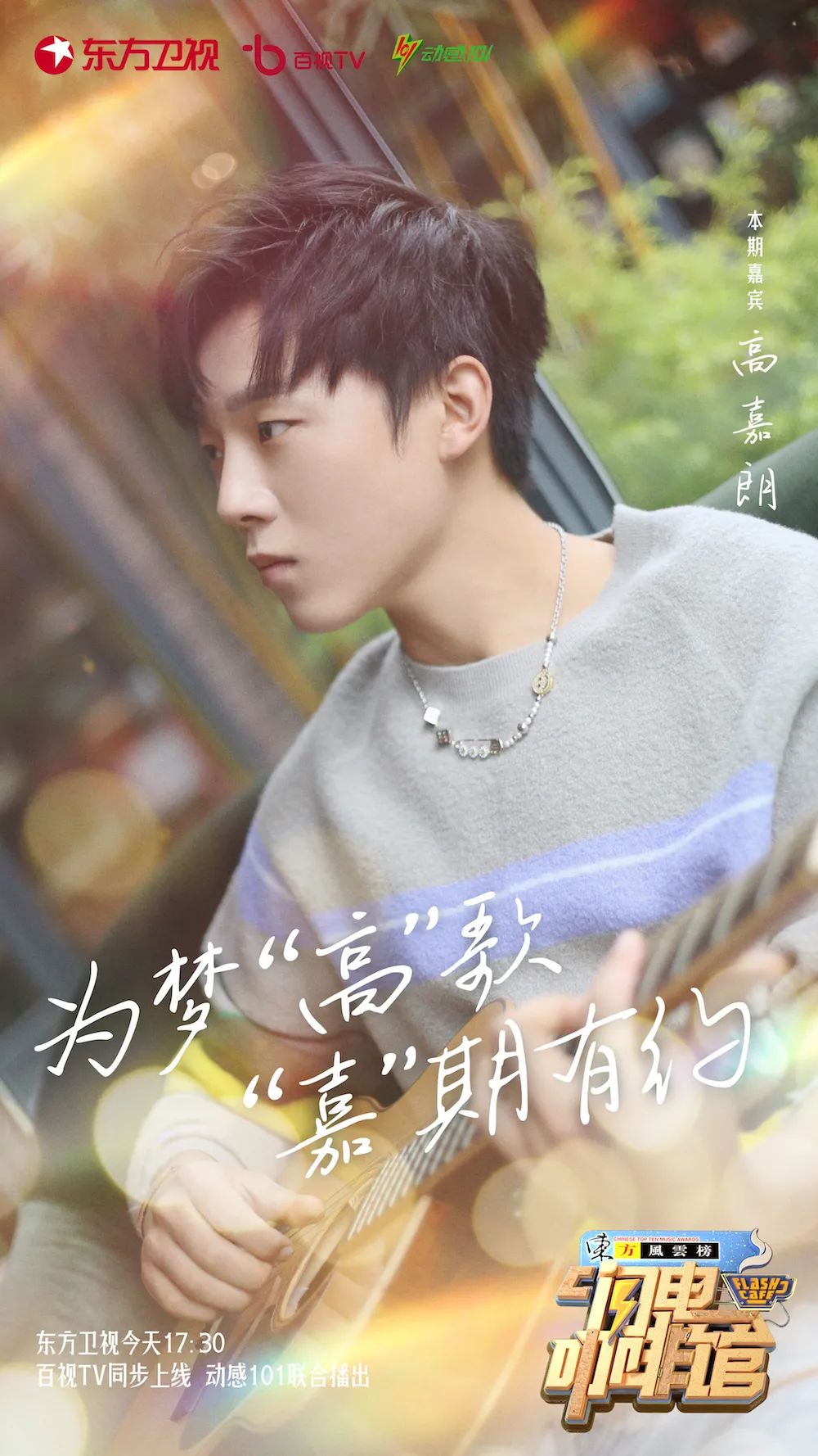 由上海人民广播电台动感101发起,东方卫视及百视TV共同打造的麦斯威尔《东方风云榜·闪电咖啡馆》今日17:30迎来歌手高嘉朗做客。帅气幽默的东北小伙高嘉朗第一次来到东方明珠,为观众们亲身推荐了国庆假期出游的好去处。在闪电咖啡馆,高嘉朗除了演唱新歌,更是拿起吉他,反客为主,来了一段R&B风格的二人转。
