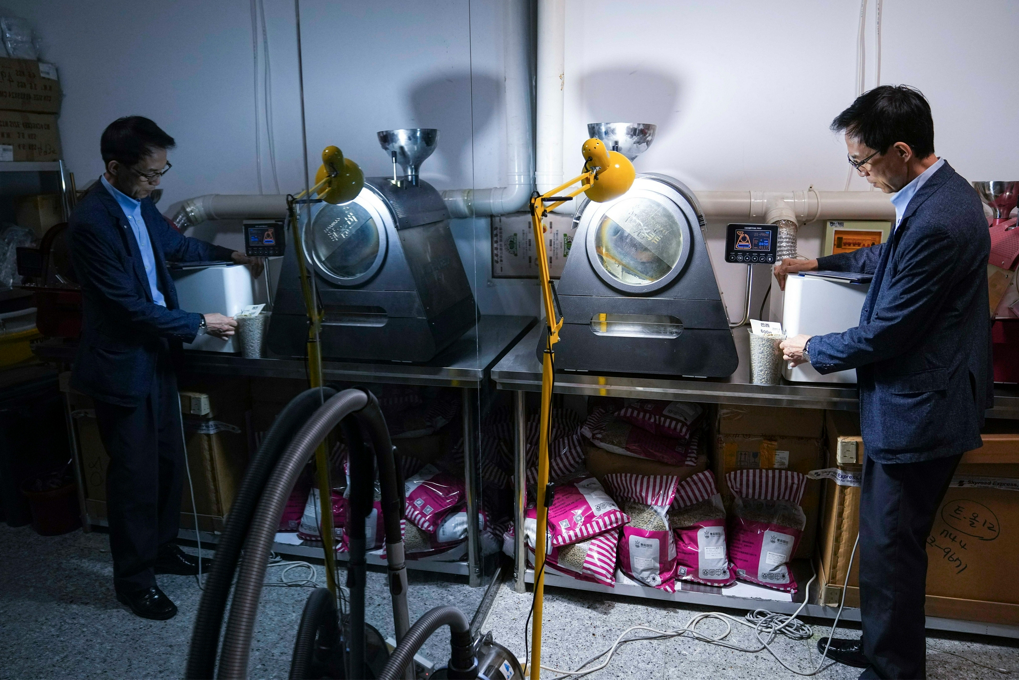 禹庆济在烘焙咖啡豆时调整参数(9月24日摄)。新华社记者 许畅 摄