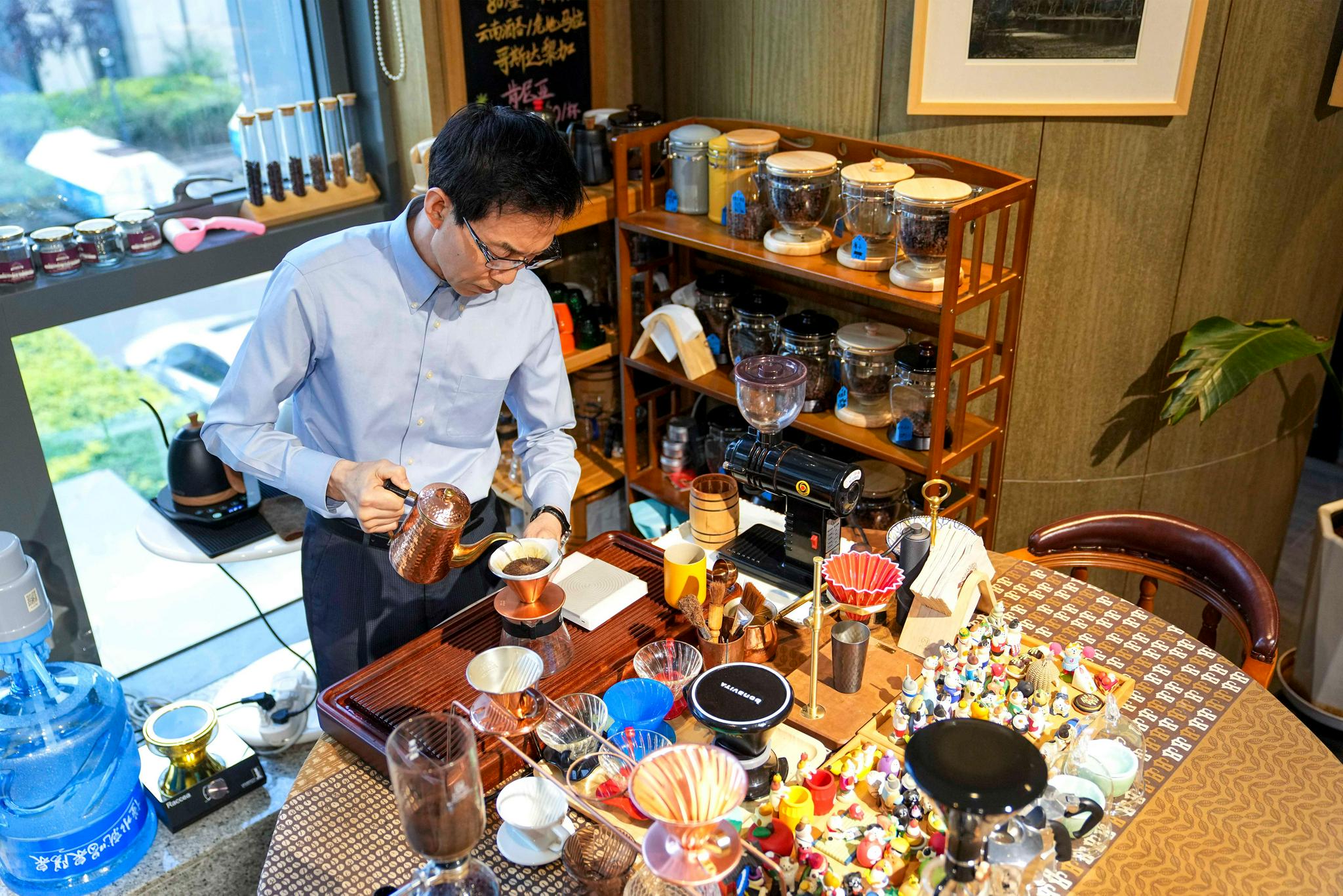 禹庆济在制作咖啡(9月24日摄)。新华社记者 许畅 摄