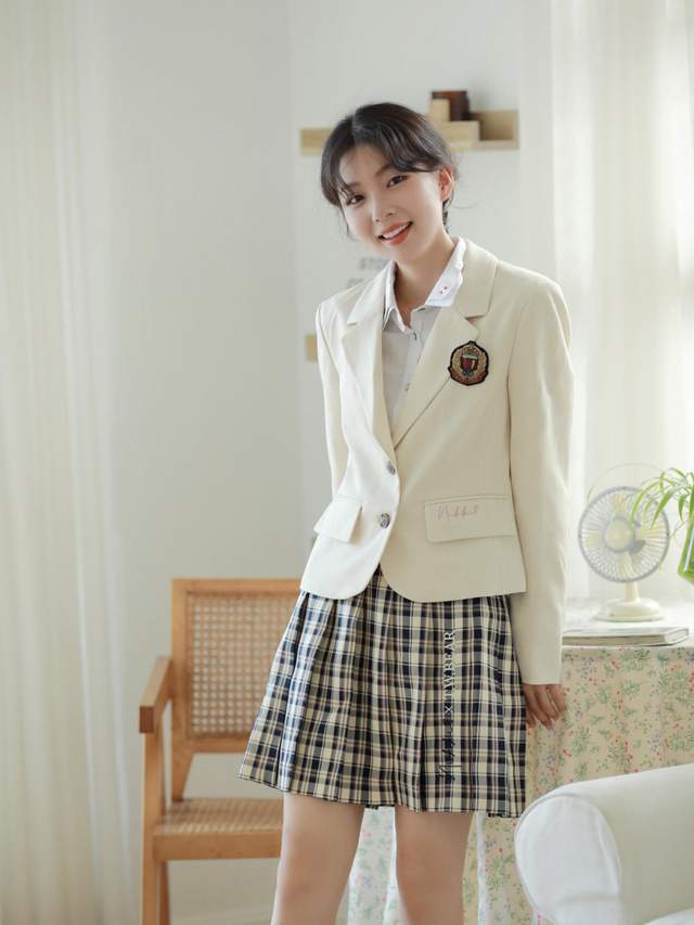 像这一整套的穿搭比较适合去上学的时候穿,穿起来青春靓丽。日常穿的话,可以熨一下,穿起来会更加的平整,而且整体看起来会更加的有质感。
