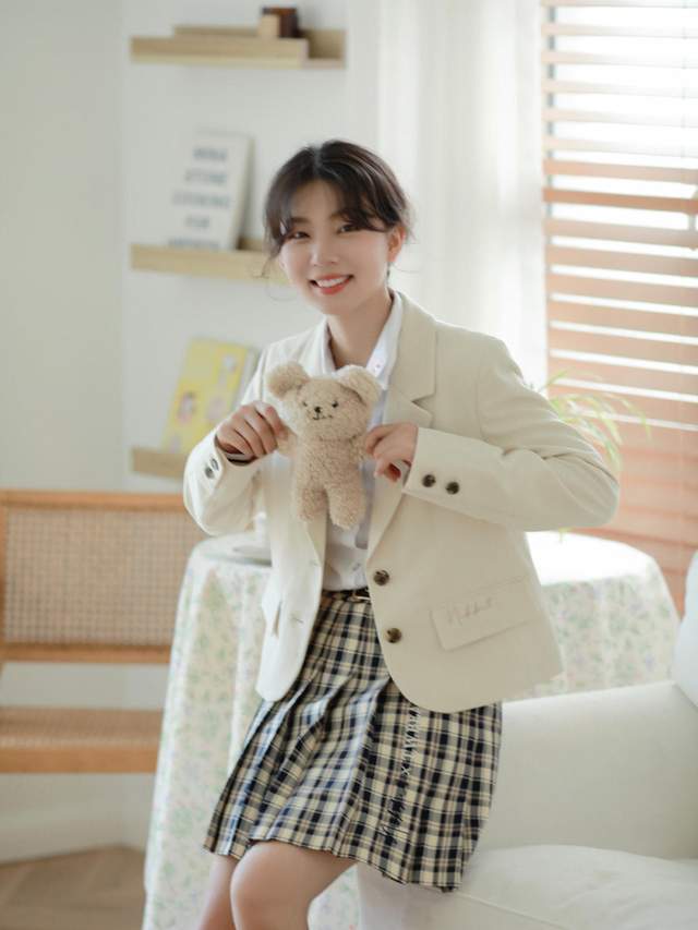 其实秋天也是比较适合穿裙子的,就像这位穿搭博主她搭配了一套学院风的套装裙,上衣挑选了一件白衬衫穿起来清纯又干净。外搭一件米白色的西装外套,短款的版型小个子女生穿起来更加的显瘦。