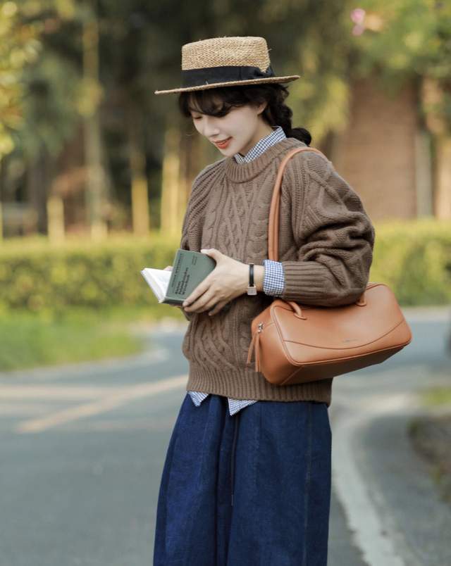 如果你去秋游的话,还可以挑选一顶编织的草帽,戴起来的话会更舒服,秋天搭配起来的话,还有一种复古优雅的感觉。