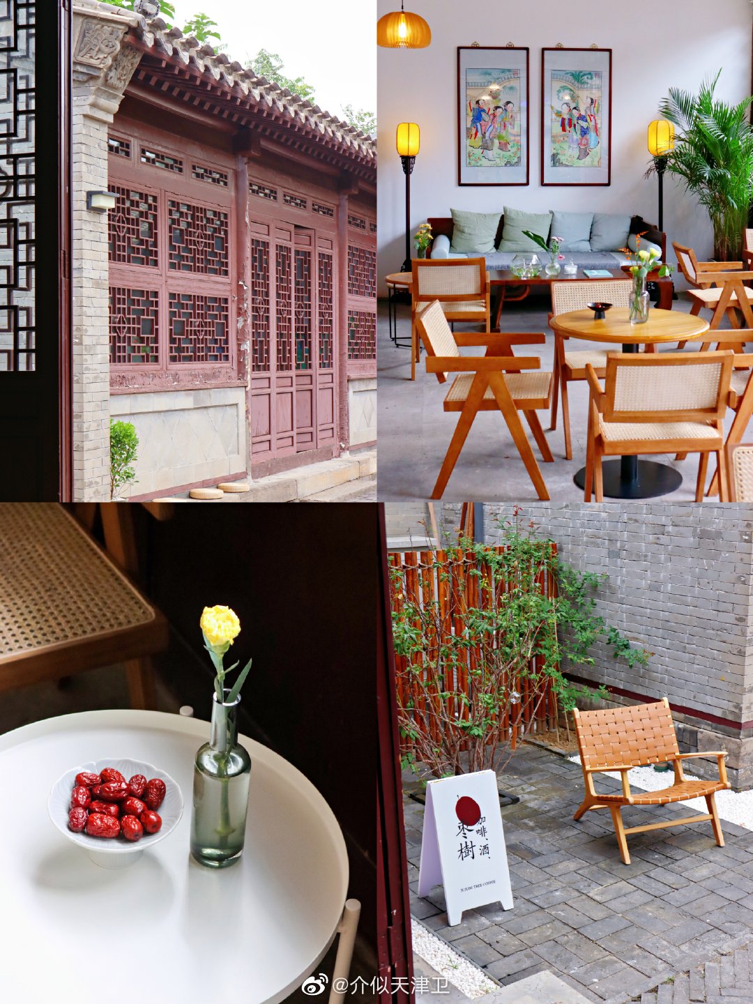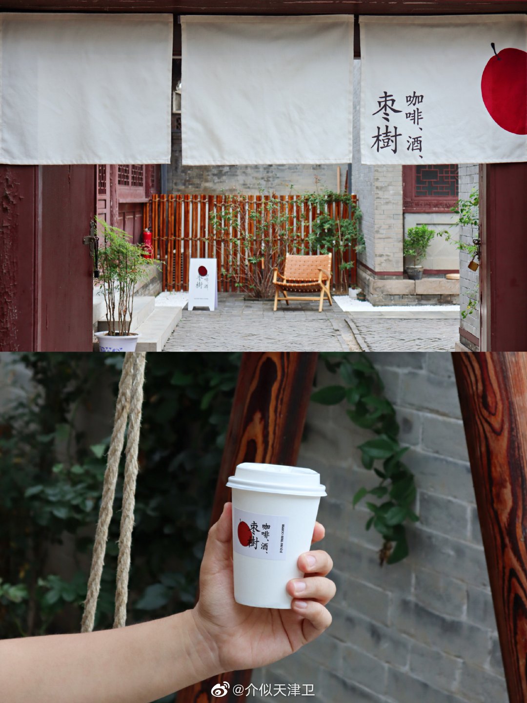 💕青砖瓦房高台阶的杨柳青董家大院里开了一家咖啡馆➡️枣树咖啡。