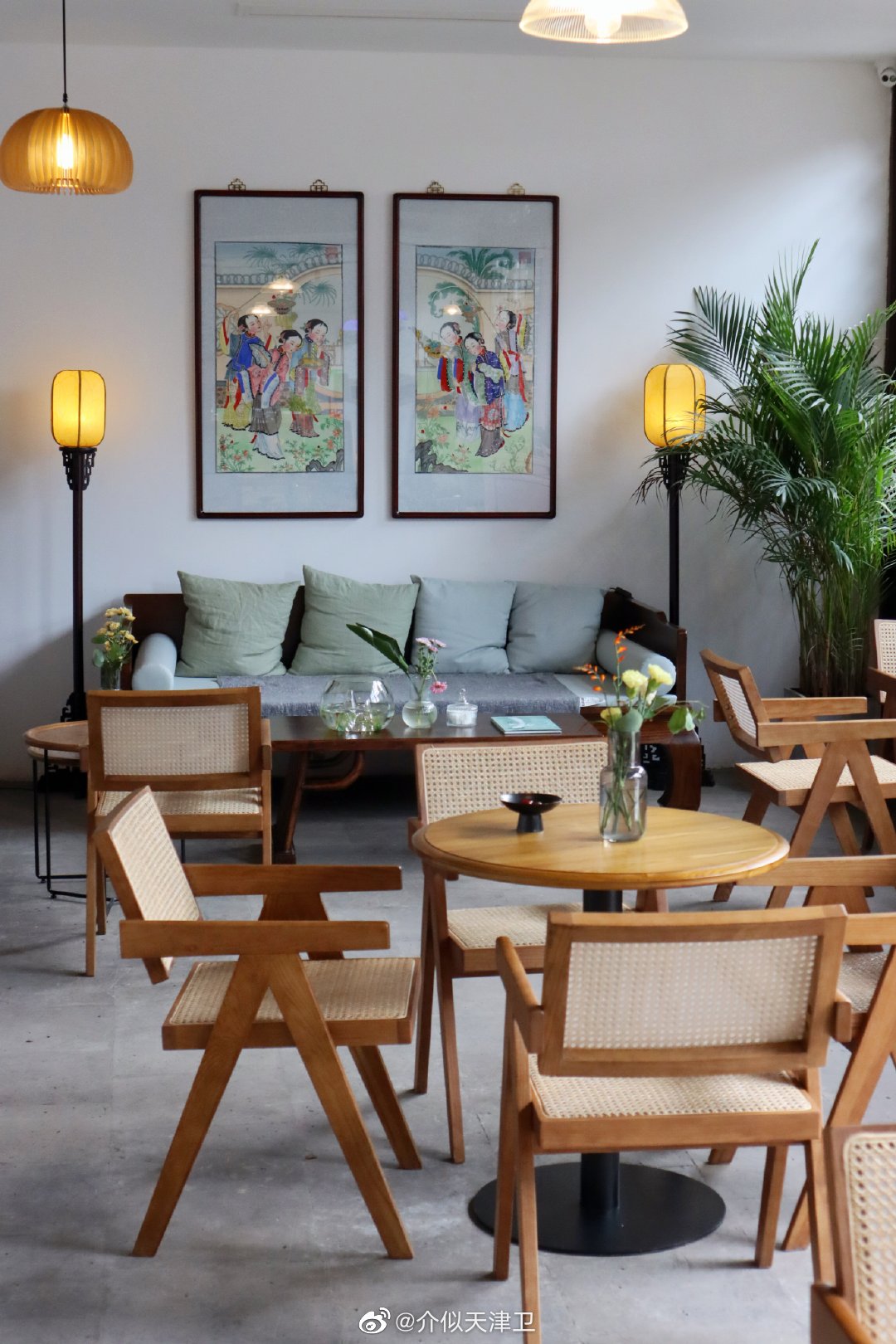 💕店内挂着多幅杨柳青年画,很有感觉,看看年画,喝杯饮品,在从屋内望去窗外放空一会,倍儿惬意️!