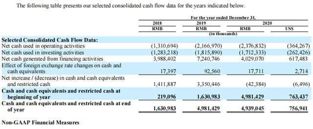 (图片说明:瑞幸2020年现金流等数据)