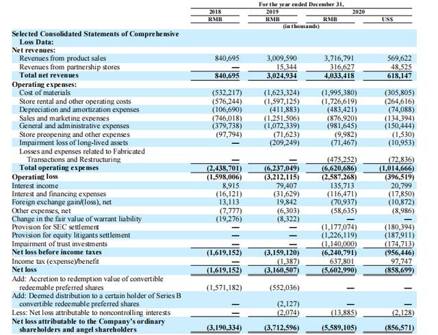 (图片说明,瑞幸2020年净收入等数据)