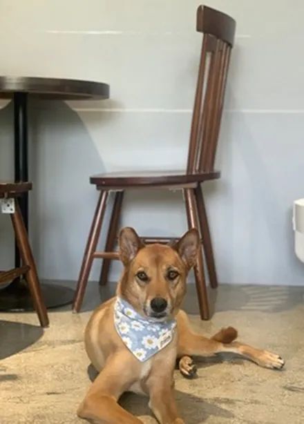 她就发现店里有一只很可爱的狗狗