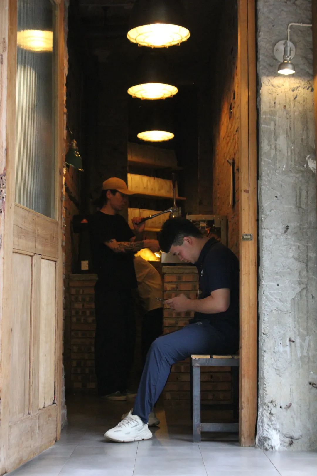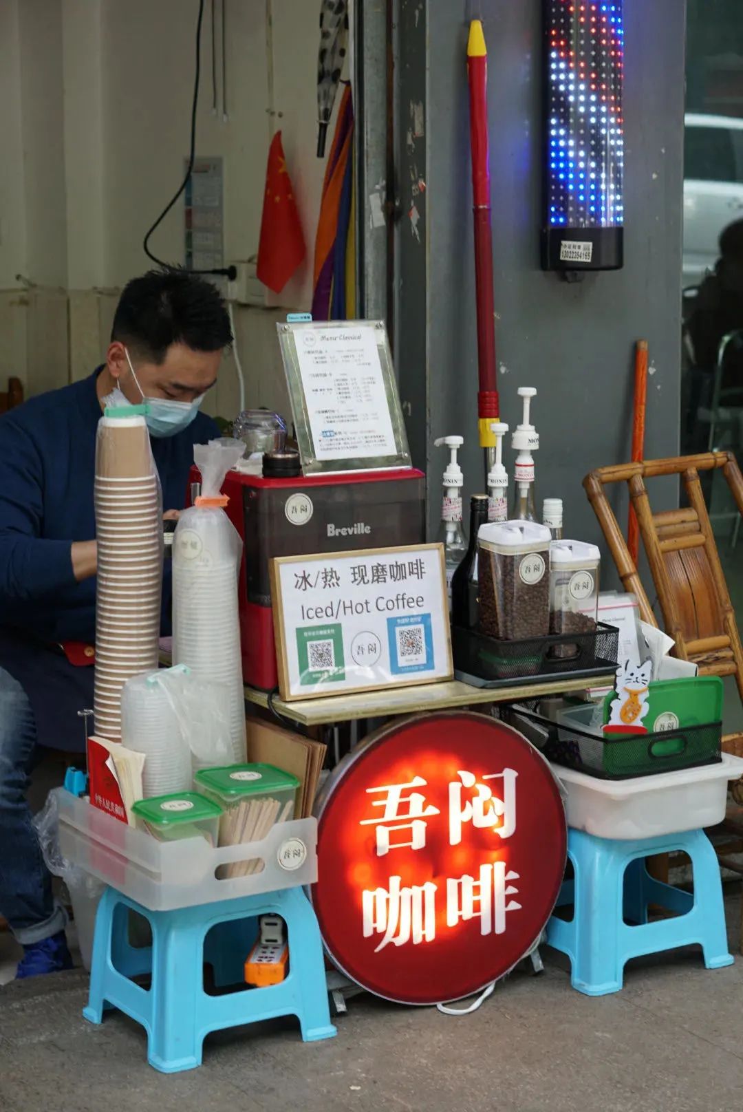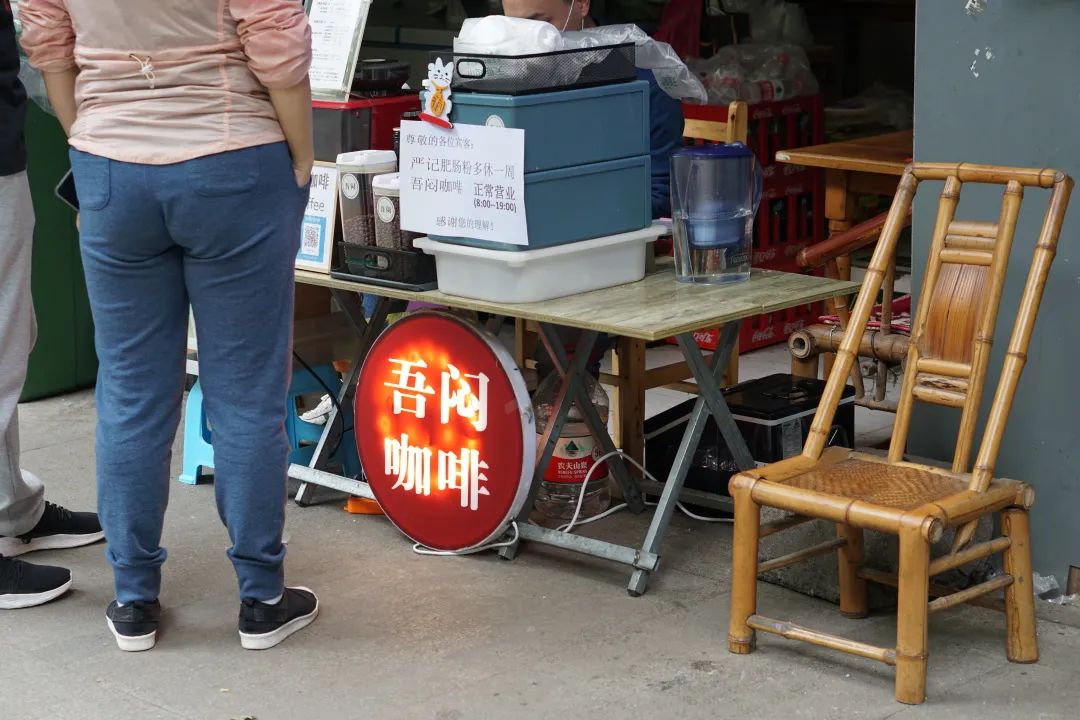 咖啡铺子已经开了一年左右,来店里吃肥肠粉配咖啡的人越来越多,猴子也没想到,自己所在的跨境企业还没复工,咖啡倒是做得越来越有模有样。单子一来,猴子扯出小板凳一坐,就开始上手操作。坐在小板凳上做咖啡的咖啡师,我也是头一次见。