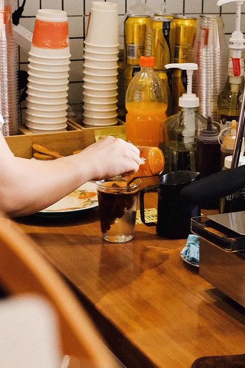 编辑部时常光顾的黄铺子居间,卖蛋烘糕,也售卖咖啡月票——以低于10元的价格,就能收获一杯冰美式,然后坐在隔壁猪脚饭店前,或不远处的面馆子里,一口冰美式,配一口饭,一口面乃至一锅油爆的冷锅串串;猛追湾旁的加乐冰,卖咖啡,也卖冰粉,好像在提醒着,成都人的夏日标配,除了冰粉,现在还多出了咖啡。