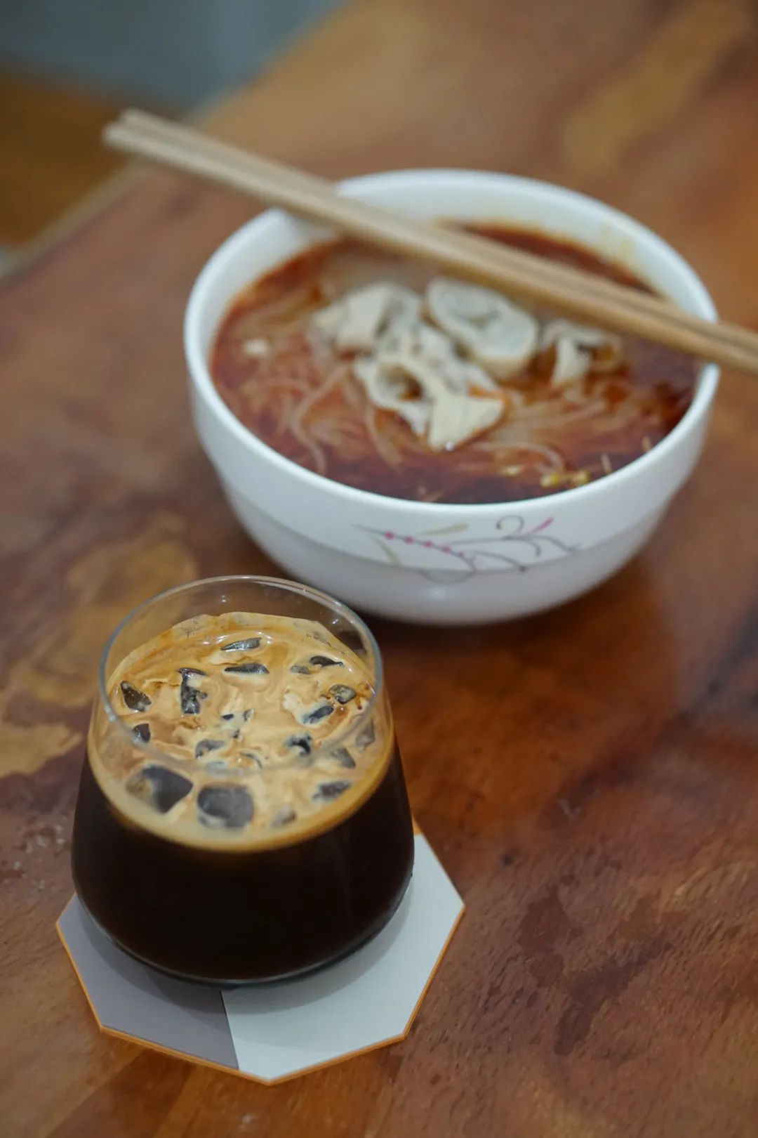 冰美式+肥肠粉的搭配看来怪异,但这场景发生在成都街巷,又觉得是在情理之中,毕竟,在成都,还有更多类似的画面正在发生: