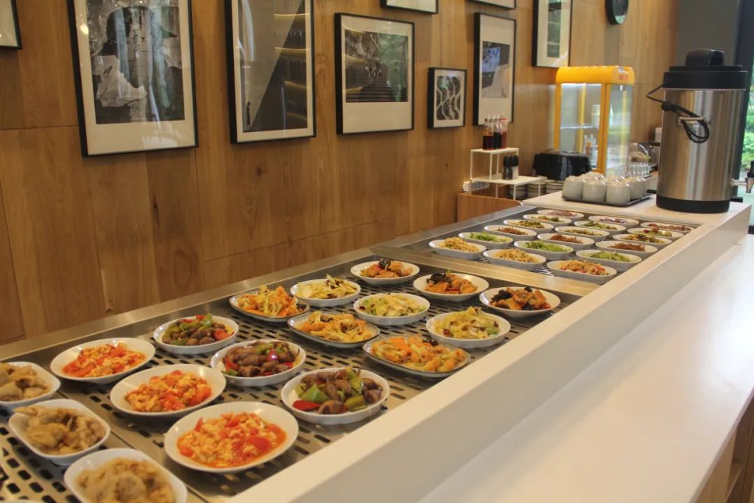早餐有油条、包子、蒸饺、披萨、蛋挞、豆浆、牛奶、营养粥……近20个品类,种类繁多,营养丰富;中午最便宜的凉拌菜3元,像韭苔炒豆干、干煸大头菜这种素菜6元,荤菜有红烧排骨、辣子鸡、腱子肉等,十几到二十几元不等。这些,是鲁信随珠花园的业主们在家门口就能享受到的“小确幸”。