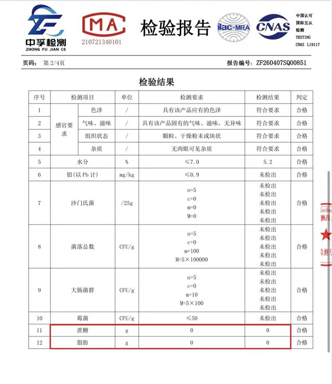 2. 问:权威检测报告是真的吗?怎么查询?答:是真的,检测报告由吉林省中孚检测技术服务有限公司出具,加盖CMA、CNAS、ilac-MRA三大权威认证章,报告编号ZF260407SQ00851,可随时查询核验,公开透明无套路。