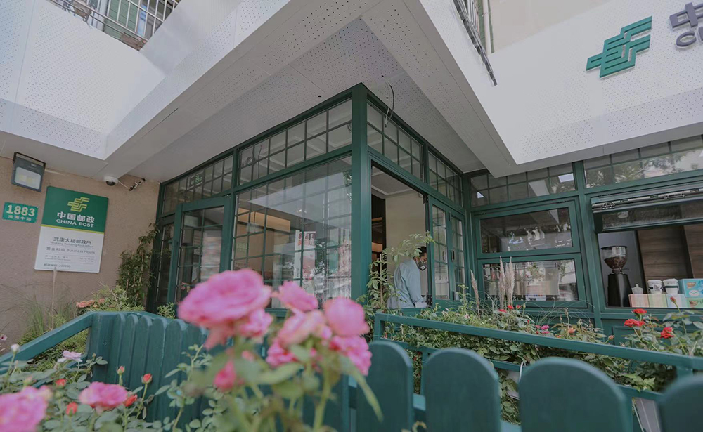 邮局外部采用庭院设计,内厅为木质装修,以30年代典雅的欧式建筑风格及开放式格局为基调,展现出独特的历史风貌与人文情怀。人们可以在这里品味上海邮政与上海老字号品牌“乔家栅”联合推出的全市第一家邮局咖啡,品尝时下大火的“武康大楼文创雪糕”,可以在这里为现在或未来的自己写下一封信,并可指定明年10月6日前的任意日期寄出,体验有声明信片打印,加盖纪念邮戳,还可以选购武康大楼明信片等精美的邮政文创产品。